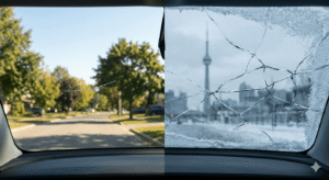 Windshield cracks spread due to temperature changes (glass expands in heat, contracts in cold), road vibration, and moisture entering the crack. Toronto’s climate — with winters at -20°C and summers at 35°C+ — is particularly aggressive. A small crack can double in length after a single cold night.